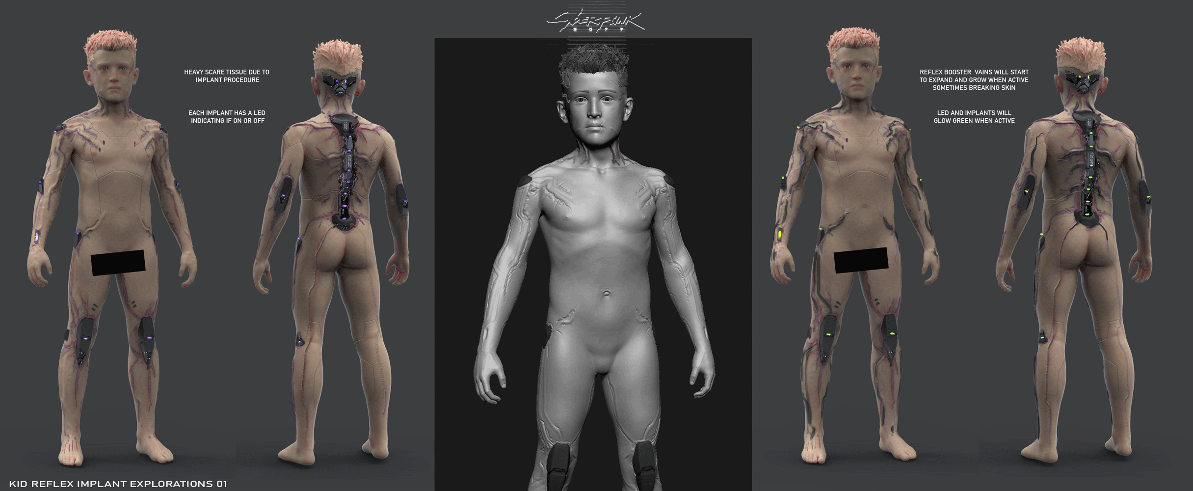Body Modifications for kid from Edge runners Netflix show - Early concepts for body enhancements